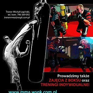 Prowadzimy treningi indywidualne oraz grupowe - możecie przyjść na trening ze znajomymi - godzinę dostosujemy do Waszych wymagań - zaprasza Sekcja MMA w Kutnie! Prowadzimy treningi: MMA, boks klasyczny, grappling.