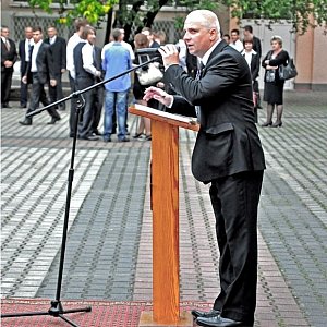 Nie, to nauczyciel wf. Przeprowadzał próby sztandarów.