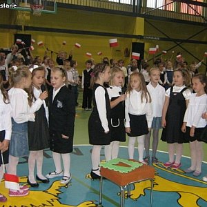 Dzieci podkreśliły w nim, że „uczniem być to ważna sprawa”, ale „szkoła to również wspaniała zabawa”. Za swój występ mali artyści nagrodzeni zostali gromkimi brawami.Następnie uczniowie z pięciu klas I złożyli uroczyste ślubowanie, w którym przyrzekali, że będą dbali o dobre imię klasy i szkoły. Był to bardzo wzruszający moment zarówno dla pierwszoklasistów, jak i dla ich rodziców. Z życzeniami do pierwszaków zwrócili się dyrektor szkoły Danuta Blus oraz Zbigniew Wdowiak. Dyrektorka podkreśliła wagę słów składanych w przysiędze ślubowania i obowiązek ich dotrzymania.