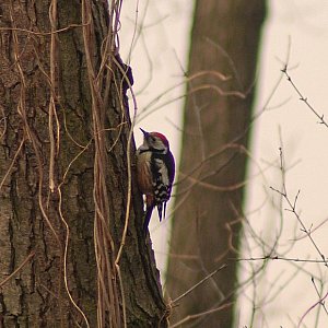 Dzięcioł średni to dość rzadki gość w naszych okolicach, spotkamy go głównie w lasach liściastych.