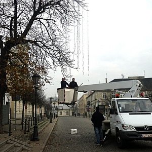 Wizyty w supermarketach przypominają nam, że Boże Narodzenie coraz bliżej. Podobno pierwsza świąteczna reklama na jednym z prywatnych kanałów telewizyjnych pojawiła się już czwartego listopada. Kutnowski magistrat na szczęście aż tak bardzo się nie ściga w przypominaniu nam o świętach. Dzisiaj rano, w godz. 9-10, można było zobaczyć pracowników wieszających na Placu Piłsudskiego iluminacje. Urząd Miasta dokupił jej nowe elementy za 10 tys. zł.