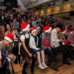 Mikołajkowy koncert prowadzili młodzież i dzieci z Teatru PUSZEK Adrianna Krukowska, Weronika Trzaskowska, Marta Dawidowicz, Julka Pawłowska, Iga Marczyńska, Kinga Maryniak, Justyna Banasiak, Julia Wojtczak, Zosia Lenarczyk, Mateusz Narkiewicz.