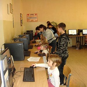 Nauczyciele edukacji wczesnoszkolnej zorganizowali dla przedszkolaków zajęcia, a także zwiedzanie sal lekcyjnych, w których będą się w przyszłości uczyły. Uczniowie kl. IIIb zaprezentowali przedstawienie profilaktyczne " Kapturek poszukuje księcia", które zostało entuzjastycznie przyjęte przez widzów. Przedszkolaki wzięły też udział w zabawach sportowych " Maluchy, to zuchy". Dzieci rozpoznawały zwierzęta, cyfry, figury geometryczne, wykazując się szybkością, spostrzegawczością i wiedzą. Za udział w zawodach otrzymały słodkie nagrody. Potem wspólnie z uczniami kl. IIc pląsały oraz tańczyły z gupą taneczną z kl. IIIa. Ponadto przedszkolaki miały możliwość wzięcia udziału w zajęciach lekcyjnych, eksperymentowania z e - bookami, tablicami interaktywnymi, komputerami. Goście odwiedzili sale lekcyjne, komputerowe, świetlicę, bibliotekę z ciekawą ekspozycją książek dla dzieci, halę sportową, basen.