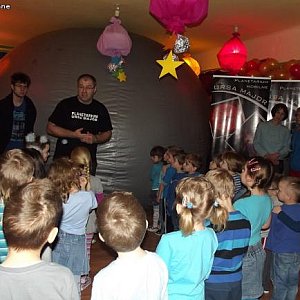 W poniedziałek hol przedszkolny zamienił się w Planetarium. W tym dniu każda grupa dzieci wzięła udział w lekcji edukacyjnej - „Pośród gwiazd, pyłu kosmicznego i latających meteorytów”. Nasi najmłodsi mogli podziwiać układ słoneczny, drogę mleczną, konfigurację gwiazd w różnych miejscach świata. Dla dzieci była to okazja do poszerzenia swojej wiedzy , rozwijania zainteresowań i odbycia cudownej podróży w niezwykły świat astronomii.