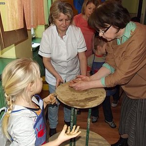 We wtorek na dzieci czekała kolejna niespodzianka - warsztaty „Nie święci garnki lepią”. Podczas spotkania dzieci wykonywały naczynia z gliny. Poznały sposób lepienia garnków z wykorzystaniem tradycyjnego koła garncarskiego. Poznały historię, tradycje i techniki garncarstwa.