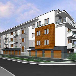 Budynek dwuklatkowy, 4- kondygnacyjny, niepodpiwniczony z 15 boksami garażowymi w parterze budynku. W parterze znajdować się będą również komórki oraz pomieszczenia techniczne. W każdej klatce schodowej winda osobowa do komunikacji między kondygnacjami. W skład każdego lokal mieszkalnego będzie wchodził balkon o powierzchni dostosowanej do wielkości lokalu.