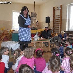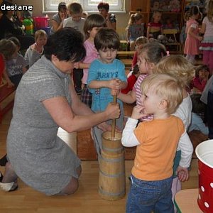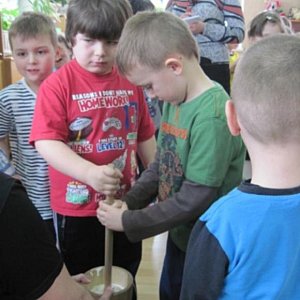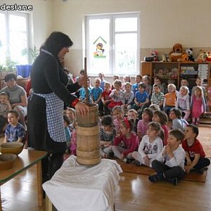 Dwumiesięczna koza Tola od razu podbiła serca wszystkich dzieci. Pozwalała się głaskać, dotykać, a prawdziwym hitem była możliwość karmienia jej mlekiem prosto z butelki. Przedszkolaki mogły też zobaczyć, czym różnią się dzisiejsze kury od kur czubatych - najstarszej polskiej rasy. Dzieci dowiedziały się, co i za pomocą jakich narzędzi dawniej gospodynie wytwarzały z mleka. Przy pomocy kierzanki (maselnicy) przedszkolaki same zrobiły masło. Na zakończenie spróbowały upieczonego tradycyjnym sposobem chleba z wyprodukowanym przez siebie masłem.
