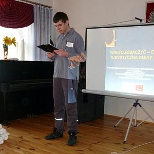 Kinga Szymczak i Martyna Katarzyńska opowiedziały bogatą prezentacją o działaniach, w których młodzież uczestniczyła. Projekt rozpoczął się od spotkań integracyjnych, na których poznawano się i planowano zadania. Potem zorganizowano krajoznawczo-turystyczny rajd rowerowy, na którym poznano zabytki gminy Kutno. W części trasy uczestniczył wójt gminy Jerzy Bryła, który pokazał malowniczą aleję w okolicy Byszewa wśród starych i sędziwych drzew. Młodzież nakłoniła wójta do powtórnego rajdu wiosną.