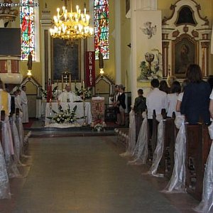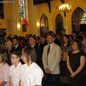 Nabożeństwo w kościele parafialnym w Krośniewicach z udziałem pocztu sztandarowego zainaugurowało ten jakże wyjątkowy dla społeczności szkolnej dzień. Mszę św. odprawił ksiądz dziekan Jacek Drzewiecki. Podczas kazania duchowny nawiązał do znaczenia dobrego imienia w czasach biblijnych. Imię niekoniecznie musi oznaczać własne imię, ale może także oznaczać pozycję, charakter oraz autorytet. Dziekan dekanatu Krośniewice podkreślił, że na dobrą reputację i imię człowiek pracuje przez całe życie. Doskonałym przykładem dla młodych ludzi jest ród Rembielińskich, który oddał nieocenione zasługi dla miasta i dla kraju.