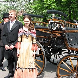 Po mszy zaproszeni goście, nauczyciele oraz rodzice i młodzież przeszli w barwnym korowodzie ulicami miasta do siedziby szkoły. Niecodzienne wydarzenie wzbudziło zainteresowanie mieszkańców, którzy przystawali, aby obejrzeć zabytkowy pojazd i młodzież przebraną w stroje z epoki patrona. Na terenie szkoły odbyła się dalsza część uroczystości. Po odśpiewaniu hymnu państwowego głos zabrał dyrektor szkoły Waldemar Pietrzak. Przypomniał m.in. znaczenie patrona dla szkoły i życzył uczniom rozwijania swoich talentów i dobrych wyników w nauce, zwłaszcza maturzystom zdającym obecnie egzaminy.