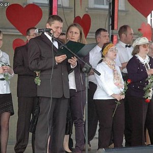 Organizatorzy zapraszają też do Pałacu Saskiego, w podziemiach którego można oglądać wystawę prac plastycznych dzieci z upośledzeniem. Za chwilę wystąpi Marek Kościkiewicz ze swoim zespołem. Imprezę prowadzi Jerzy Papiewski.