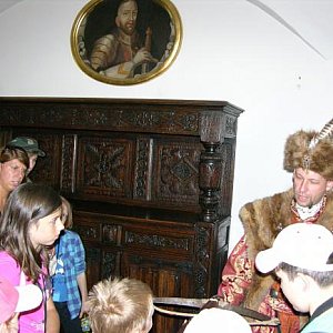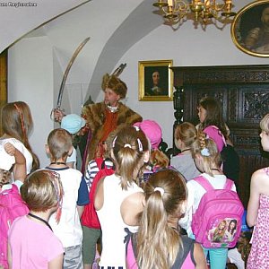 Uczestnicy wycieczki z wielką fascynacją i zainteresowaniem oglądali przedmioty użytku codziennego dawnej szlachty. Po interesującej lekcji wycieczka wyruszyła na polanę, gdzie odbyły się zawody zręcznościowe. Dzieci próbowały swych sił w strzelaniu z łuku, rzucie kulą i podkową, grze w bule, wyścigach w workach i przeciąganiu liny. Zawodom towarzyszyła miła, przyjazna atmosfera i sportowa rywalizacja. Po wspólnych rozgrywkach i świetnej zabawie przyszedł czas na ognisko. Dzieci posiliły się kiełbaskami i odpoczywały na kocach pod gołym niebem. Piknik okazał się dobrym sposobem na spędzenie wolnego czasu.