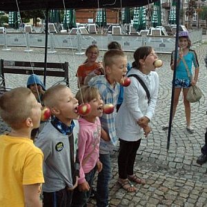 Dzieci chętnie uczestniczyły w konkursach z nagrodami. W jedzeniu jabłka bez używania rąk najlepszy okazał się Bartek. Ogromnymym zainteresowaniem cieszyły się zawody w przechodzeniu przez tunel na czas. Doszło nawet do emocjonującej dogrywki między Mateuszem a Maksem, którą z czasem 2,50 s zwyciężył ten drugi. Ponadto odbyły się drużynowe konkursy logiczne - na rozszyfrowanie anagramów i wykreślanie słów z diagramu. Chętni mogą skorzystać ze zjeżdżalni oraz puszczać bańki mydlane.