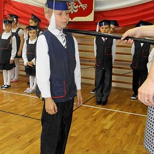 Pierwszoklasiści ślubowali na sztandar szkoły w obecności pani dyrektor, nauczycieli, rodziców, kolegów i koleżanek. Przyrzekali, że będą dobrymi uczniami i obywatelami. Obiecali, że zadbają o dobre imię szkoły oraz przyrodę. Zapewnili, że swoją nauką i zachowaniem będą sprawiali radość rodzicom, nauczycielom oraz swojej Ojczyźnie.