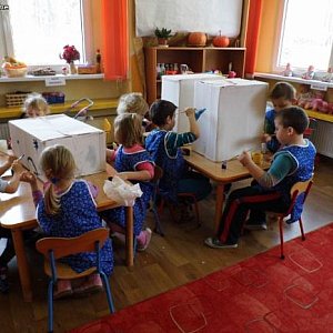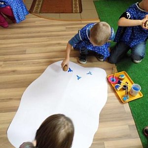 Inspiracją do działań w tym zimowym tygodniu było obejrzenie filmu pt. "Epoka lodowcowa" W kolejnych dniach dzieci skonstruowały pojazd do poruszania się po"Lodowej krainie", który samodzielnie nazwały "Rakietośniegowóz", przeprowadzały doświadczenia ze śniegiem, brały udział w zabawach parateatralnych "Jestem jak pingwin", bawiły się przy muzyce i działały twórczo, wykorzystując techniki porównania, stemplowały na kartonach stemplami w kształcie zwierzęcych tropów.
