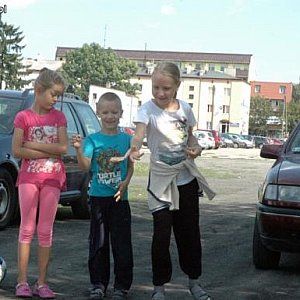 Ponadto dzieci wybrały się na teren koło boiska przy ul. Oziębłowskiego, aby grać w kolory i w ciekawą odmianę państw i miast. Otóż na wyrysowoną tablicę z kategoriami (państwa i miasta, zwierzęta, zabawki, potrawy, imiona) rzucało się kamykiem (1 punkt za celny rzut) i trzeba bylo wymienić 3 przedmioty z danej kategorii. Wygrywał ten kto zdobył najwięcej punktów.