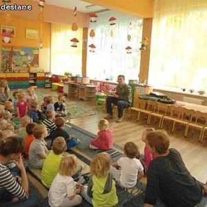W ramach obchodów Ogólnopolskiego Dnia Głośnego Czytania Przedszkole Miejskie nr 15 Bajka odwiedził pracownik Biblioteki Pedagogicznej, który przeczytał legendę pt. "Kwiat paproci" i przy dźwiękach gitary bawił się z dziećmi w zabawy naszych dziadków: "Jawor, jawor", "Praczki", "Stary niedźwiedź".