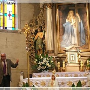 Zwiedzanie zakończyliśmy na zewnątrz, oglądając miejsca pochówku osób związanych z tym kościołem. I tu znów dzięki wiedzy pana Mariana dowiedzieliśmy się wielu ciekawych rzeczy. Pożegnaliśmy sympatycznego przewodnika, zrobiliśmy zdjęcie dla potomności i ruszamy w dalszą trasę.