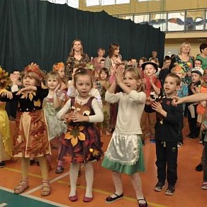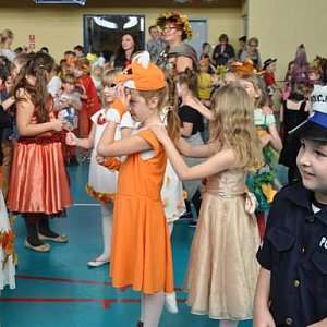 Wszystkie dzieci przybyły na bal w kolorowych strojach nawiązujących do tematyki jesiennej. Dzieci chętnie brały udział w tańcach, zabawach prowadzonych przez wodzireja. Nie zabrakło słodkiego poczęstunku przygotowanego przez rodziców naszych uczniów. Wszyscy bawili się doskonale i już z niecierpliwością czekają na następny bal w karnawale.