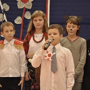 Następnie uczniowie klas: II „C” i IV „C” zaprezentowali inscenizację, w której pewna tajemnicza postać pomogła chłopcu rozwiązać poważny problem, czyli przygotować informacje o Święcie Niepodległości. Myszka – bo to ona była tą tajemniczą postacią- pokazała Kubie, jak w 1795 roku Rosja, Austria i Prusy podzieliły Polskę między siebie i wymazały ją z mapy świata.