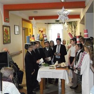 W minioną sobotę siostra Aurelia Leszczyńska z uczniami Szkoły Podstawowej nr 6 w Kutnie odwiedziła mieszkańców Domu Pomocy Społecznej przy PCPR w Kutnie , gdzie dzieci przedstawiły „ Jasełka”.