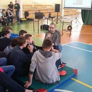 Warsztaty inspirowane były przeszłym życiem autora i wykonawcy. Przebieg spotkania zawierał cztery elementy: wykład, rozmowy z młodzieżą, scenki dramowe, muzykę. Młodzież gimnazjum pozytywnie odebrała przekaz Dobromira Makowskiego. Koordynatorami spotkania były panie pedagog.