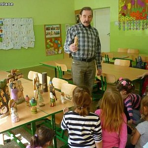 Artysta bardzo ciekawie opowiadał o rzeźbach w postaci aniołków i diabłów będących elementami wierzeń ziemi łęczyckiej. Rzeźbiarz ma własny styl i stosuje bogatą kolorystykę, wykonuje motywy sakralne, biblijne, obrzędowe . Stańczyk mówił ile potrzeba pracy, wysiłku i cierpliwości by rzeźby mogły powstać oraz jakich narzędzi i materiałów używa do pracy. Spotkanie było bardzo twórcze, pobudzało wyobraźnię, dzieci świetnie się bawiły słuchając opowieści oraz odgrywając scenki z wykorzystanie rzeźb pana Józefa.
