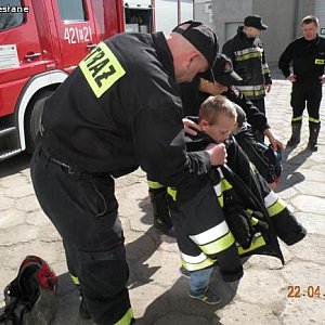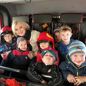 Podczas wcześniejszej wizyty u strażaków dzieci zwiedziły miejsce ich pracy, poznały wizerunek patrona – św. Floriana, oglądały sprzęt i samochody strażackie. Widziały jak strażak wspinał się na atrapę wysokiego budynku a ponadto były świadkami przygotowań do akcji i wyjazdu w teren. Dzieci z wielką odwagą podjęły się gaszenia pożaru a potem czynnie brały udział w „konferencji prasowej”. Wychowawczynie z dumą przyglądały się poczynaniom maluchów, które udowodniły, że nauka przyniosła skutki.