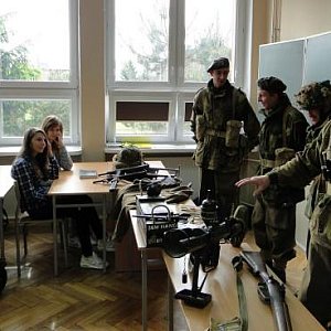 Członkowie Stowarzyszenia: prezes Wiesław Paluchowski, Michał Paluchowski oraz absolwenci II LO Rafał Nowicki, Przemysław Grams przedstawili historię spadochroniarstwa w Polsce, zapoznali słuchaczy z podstawowym uzbrojeniem żołnierzy Polskich Sił Zbrojnych w czasie II wojny światowej. Omówili cele i przebieg operacji Market-Garden oraz sylwetkę gen. Stanisława Sosabowskiego. Zwrócili uwagę na zasługi Polaków oraz ich wielkie poświęcenie i patriotyzm na wszystkich frontach II wojny światowej.