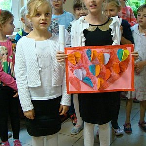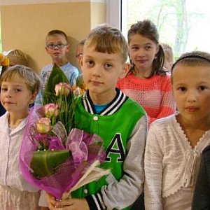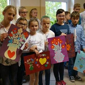Z tej to właśnie okazji społeczność naszej szkoły zebrała się w przeddzień tego wydarzenia na górnym holu. Uczniowie kolejnych klas, począwszy od dzieci oddziału przedszkolnego aż do uczniów klasy VI prezentowali się w krótkich utworach wokalnych i literackich. Dzieci składając życzenia wręczyli wszystkim pracownikom naszej szkoły własnoręcznie wykonane laurki i listy z życzeniami.