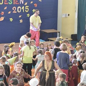 W zabawie uczestniczyły dzieci z zaprzyjaźnionych przedszkoli nr 5, 8 i 16 z Kutna. W jesiennej zabawie w rytmie ulubionych przebojów wszystkim dopisywały dobre humory. Dzieci przyszły ubrane w barwach jesieni: w koronach z kolorowych liści, w jarzębinowych koralach. Nie zabrakło dorodnych borowików i czerwonych muchomorów oraz rudych wiewiórek i innych leśnych zwierząt.