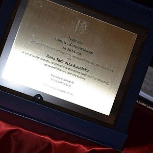 Wczoraj artysta rzeźbiarz, kolekcjoner Tadeusz Kacalak odebrał Nagrodę Starosty za rok 2014 w uznaniu całokształtu działalności w dziedzinie twórczości artystycznej, upowszechniania i ochrony kultury. Uroczystość miała miejsce w Centrum Teatru Muzyki i Tańca, a organizowana była wspólnie przez Towarzystwo Przyjaciół Ziemi Kutnowskiej i Starostwo Powiatowe w Kutnie w ramach inicjatywy lokalnej złożonej do Zarządu Powiatu w Kutnie.