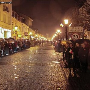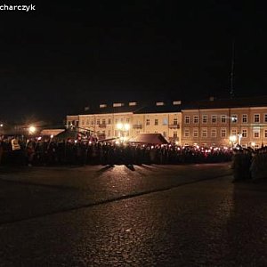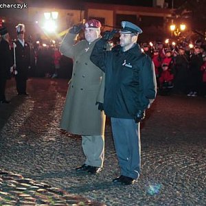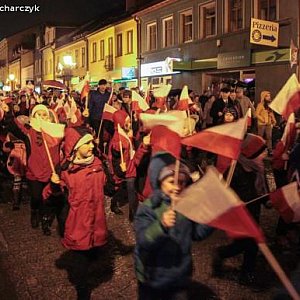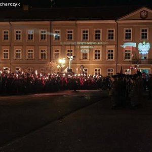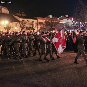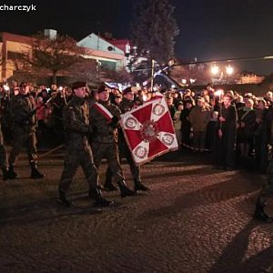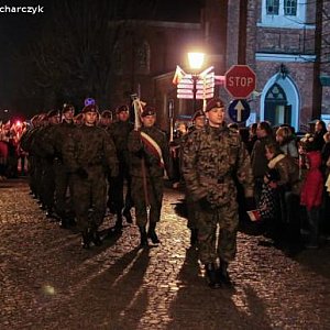 Kompania Honorowa 1 Dywizjonu Lotniczego z Leżnicy Wielkiej oraz Pododdział Honorowy I LO PUL im. 37 Łęczyckiego Pułku Piechoty przemaszerowali z kościoła ulicą Królewską na plac Piłsudskiego. Za nimi harcerze, mieszkańcy miasta z biało-czerwonymi kotylionami lub flagami.