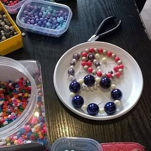 Po krótkim instruktarzu prowadzącej Anny Gładysiak zróżnicowana grupa miłośników zajęć manualnych zabrała się do pracy. W procesie rekrutacji na zajęcia ani wiek, ani płeć nie grały roli, więc w warsztatach mógł wziąć udział każdy, kto dysponował wolnym czasem i chęcią tworzenia. Przez około dwie godziny powstały niezliczone ilości bransoletek, naszyjników i kolczyków. Nawlekanie koralików sprawiło uczestnikom zajęć wiele przyjemności, a także pozwoliło się zrelaksować. Nauczyło również cierpliwości, ponieważ czasami niesforny koralik zsunął się z żyłki i cała kilkunastominutowa praca lądowała na podłodze w rozsypce, więc dla uzyskania zamierzonego efektu należało rozpocząć tworzenie od nowa.