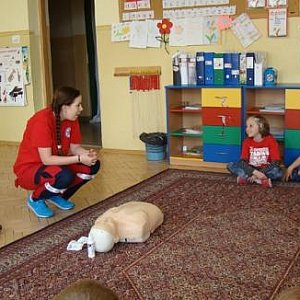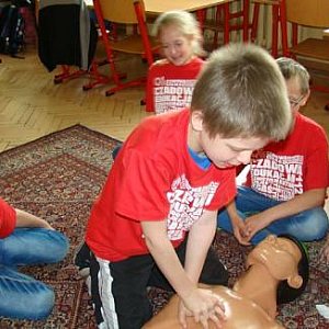 W maju uczniowie uczestniczyli w warsztatach edukacyjnych. Zajęcia podzielono na trzy części: naukowo- badawczą, pożarniczą i ratowniczą. Dziewczęta z Grupy Ratownictwa Medycznego OSP Dąbrowszczak zaprezentowały sposoby udzielania pierwszej pomocy. Dzieci uczestnicząc w zajęciach praktycznych nauczyły się właściwego zawiadamiania służb ratowniczych z użyciem europejskiego numeru alarmowego, numerów do właściwych służb oraz różnych sposobów udzielania pierwszej pomocy.