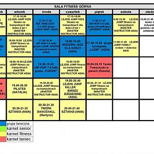 Grafik podzielony jest na sale, na których odbywają się zajęcia, dlatego też czytaj uważnie - Takiego wyboru zajęć nie znajdziesz nigdzie!