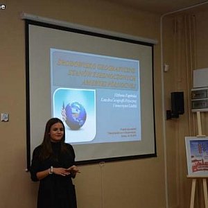 W półtora godzinną podroż po Stanach Zjednoczonych zaprosiła słuchaczy dr Elżbieta Papińska. Prodziekan Wydziału Nauk Geograficznych Uniwersytetu Łódzkiego mówiła o położeniu geograficznym, budowie geologicznej i warunkach klimatycznych kraju. Poruszała zagadnienia dotyczące spraw społecznych i ekonomicznych. Wykład zakończyła prezentacją fotografii z najpiękniejszych miejsc, które osobiście odwiedziła: najsłynniejsze Parki Narodowe, zdjęcia z wyprawy na Alaskę w 2013r, czy podróż na Hawaje w 2014 roku.