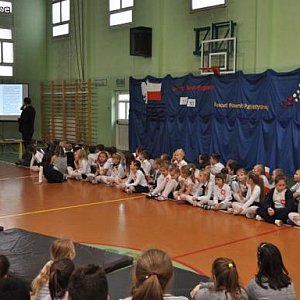 Na zakończenie Pani Dyrektor zarekomendowała społeczności szkolnej uroczystości miejskie w dniu 11 XI. Szkołę reprezentował chór oraz asysta pocztu sztandarowego. Młodzież wraz z innymi uczniami szkół podstawowych złożyła kwiaty przed pomnikiem Marszałka Józefa Piłsudskiego.