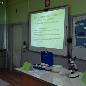 W uroczystym otwarciu Eko- pracowni „ Ekologiczne pogotowie ratunkowe” przy Szkole Podstawowej nr 1 im. Tadeusza Kościuszki w Kutnie wzięli udział Zbigniew Burzyński Prezydent Miasta Kutna, Zbigniew Wdowiak zastępca prezydenta, Bohdan Cezary Dierżek zastępca prezesa zarządu WFOŚ i GW w Łodzi, Paulina Zagórowska inspektor Biura Obsługi Funduszy Pomocowych Urzędu Miasta, Patrycja Paluszkiewicz- Pietrzykowska p rzewodnicząca Rady Rodziców przy SP nr 1 oraz uczniowie.