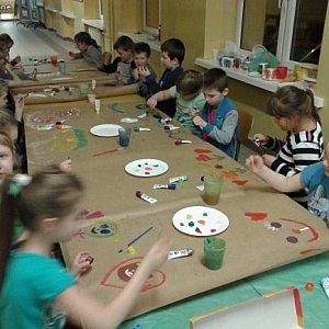 i szukali odpowiedzi na pytanie akim powinno się być człowiekiem, malowali na dużym formacie jak się czują. Praca plastyczna została przerwana na spożycie smakowitej pizzy. Niektóre pizze miały piękny uśmiech i duże oczy.