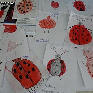 Wczoraj od rana dzieci z grup przedszkolnych i wszyscy uczniowie rysowali biedronki, które naklejone na plakat przypominały, że 12 marca odbędzie się rejestracja potencjalnych Dawców krwiotwórczych komórek macierzystych Fundacji DKMS dla Oliwii ze szkoły we Wroczynach i innych. Ulotki informujące o tej akcji każde dziecko zabrało ze sobą do domu.