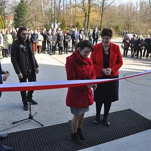 W czwartek, 16 marca w obecności zaproszonych gości, radnych miejskich i pracowników urzędu, Burmistrz Gminy Grzegorz Ambroziak wraz z Przewodniczącą Rady Miejskiej Elżbietą Tarnowską, dokonali uroczystego symbolicznego otwarcia zmodernizowanej siedziby Ratusza. Do przecięcia wstęgi burmistrz zaprosił dwoje przedstawicieli młodego pokolenia pracowników urzędu, Agnieszkę i Michała oraz przewodniczącą RM.