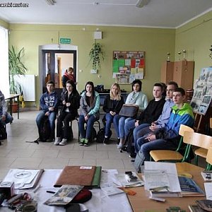 Młodzież wysłuchała kilku wierszy, odtworzonych z audiobooka, czytanych przez lektora Dariusza Bereskiego aktora teatralnego, telewizyjnego, Mistrza Mowy Polskiej Vox Populi 2012 r.