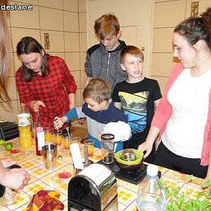 W ramach spotkania odbyły się cztery warsztaty. Jedna grupa przygotowywała pizzę, druga kolorowe drinki, trzecia – koktajle owocowo- warzywne , natomiast czwarta – deser, pomarańczowe spaghetti z owocami, bitą śmietaną i kubusiowym kawiorem.