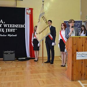 Podczas spotkania nastąpiło symboliczne przekazanie Sztandaru Szkoły i szkolnego dzwonka przedstawicielom klas drugich. Pożegnanie w imieniu abiturientów wygłosili Oliwia Grzelak i Patryk Pieniążek. Podniosłą atmosferę uroczystości zapewniły występy wokalne: Natalii Kaczmarek, Pauliny Trusińskiej i Pauliny Siudy, którym akompaniował zespół w składzie: Beniamin Przeradowski, Michał Lewandowski, Mateusz Rybczyński i gościnnie Michał Rojewski. Uroczystość przygotowali uczniowie klas: IIB i IIC wraz z wychowawcami: Urszulą Matusiak i Sławomirem Klarzakiem.