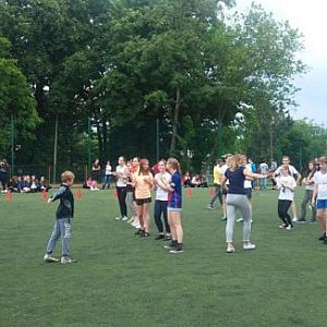 W ubiegły poniedziałek klasy pierwsze wzięły udział w grach i zabawach sportowych. Sześcioosobowe drużyny rywalizowały ze sobą w konkurencjach wymagających szybkości, umiejętności współpracy, a także talentu plastycznego: „Bieg Krzyżaków”, „Bieg szóstek- pociąg”, „Bieg w parach z piłką”, „Bieg z gazetą”, Mumia „Bieg – portret wychowawcy”.