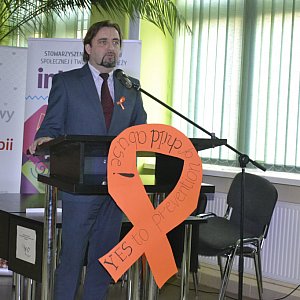 Tomasz Lemański, pedagog w Ośrodku Interwencji Kryzysowej w Kutnie oraz pedagog I LO im. J.H. Dąbrowskiego w Kutnie mówił o konsekwencjach i zapobieganiu przemocy wobec dzieci - W swojej pracy stykam się z dziećmi w różny sposób dotkniętych przemocą, w jednych placówkach bardziej w innych prawie wcale. W LO pracujemy na zasadach pozytywnego wzmocnienia i wsparcia dotkniętych przemocą, przeprowadzamy badania, uczymy dyskutować, rozwijamy zainteresowania młodych ludzi. Z kolei w POW Tęcza mamy do czynienia z dziećmi potłuczonymi przez życie, przez rodziców, przez warunki w jakich musiały przebywać. Trafiają do nas już ukształtowane ze środowisk niedostosowania społecznego. Co możemy zrobić? Możemy zaopiekować się dzieckiem w ramach wiktu i opierunku, ale najważniejsza jest praca z jego rodziną, bo to ją trzeba zmienić, aby dziecko mogło do niej wrócić. Następnym miejscem, w którym pracuję jest Powiatowy Ośrodek Interwencji Kryzysowej i w tym miejscu pracujemy z ofiarami i sprawcami przemocy. Moim zdaniem walka z przemocą to jak walka z hydrą, jedną głowę odrastamy, wyrasta nowa, trzeba ją uderzyć w serce nie mieczem ale rozumem. Zacznijmy pracować z rodzicami, bo potwory rodzą potwory. To z nimi trzeba rozmawiać, to ich trzeba prostować.