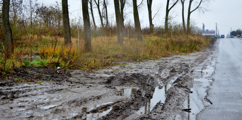- Jeżdżę często ulicą Przemysłową i co jakiś czas na drodze zostawione są wielkie grudy błota, albo pół ulicy jest brudne. Zauważyłem, że ciężkie samochody wjeżdżają przez pobocze na tereny kolejowe. Czy to legalne? Proszę o interwencję - pisze Czytelnik eKutno.pl
