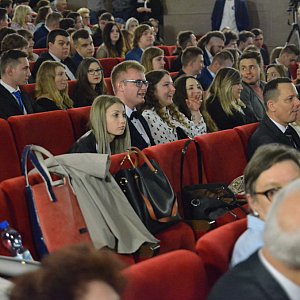 -Występuję dziś tutaj wraz z dwiema osobami, które chciałbym wam przedstawić. stoją tutaj za mną na scenie Robert Baryła, radny Sejmiku Wojewódzkiego, dyrektor KRUS w Kutnie, były dyrektor mojego biura, Jolanta Pietrusiak wiceprzewodnicząca Rady Powiatu w Kutnie, obecna dyrektor mojego biura. Mam nadzieję, że biuro będzie nadal kuźnią kadr samorządowych, bowiem na sali jest jeszcze trzecia osoba, absolwent Zespołu Szkół nr 3 im. Wł. Grabskiego Adrian Zieliński mój asystent. Mam też społecznego asystenta również byłego ucznia waszej szkoły, ale ma dziś zajęcia na Uniwersytecie Warszawskim, nie mógł być z nami - zaczął przemówienie poseł Woźniak. - Staramy się wspierać lokalnie umocowanych, urodzili się w Kutnie, powiecie kutnowskim. W waszym hymnie było śpiewane, że nieważne jest to aby codziennie wygrywać. Nasze życie nie składa się z samych sukcesów. Najważniejsze jest to aby być codziennie przyzwoitym człowiekiem, codziennie myśleć o tym jak można pracować nie tylko dla siebie, dla rodziny, ale i dla lokalnej społeczności i Polski. Życzę wam z całego serca abyście przez całe swoje życie dobrze służyli lokalnym społecznościom, ale i naszej umiłowanej ojczyźnie.