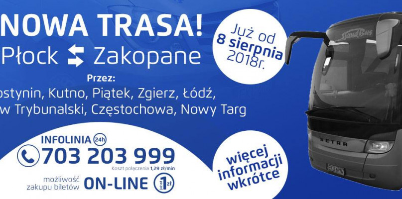 Bus do Zakopanego wyrusza z Płocka, przez Gostynin, Kutno, Piątek, Zgierz, Łódź, Piotrków Trybunalski, Częstochowę i Nowy Targ. Podróż w góry potrwa około 7-8 godzin.
